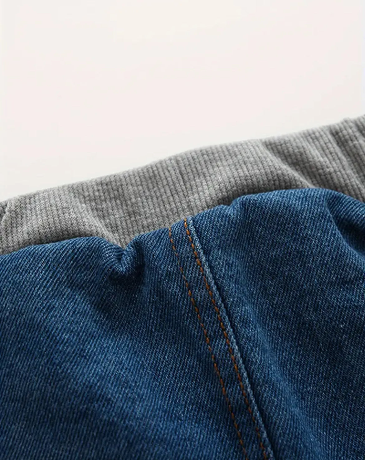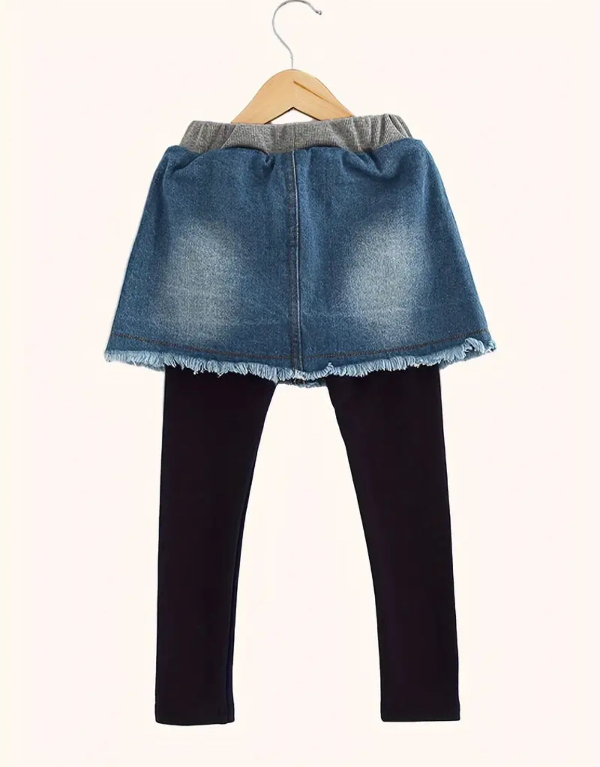 Cute rough edge Jean skirt with polyester/cotton leggings attached underneath. Fits on the bigger side, so a 3/4T is more of a size 4. 1-3 week delivery