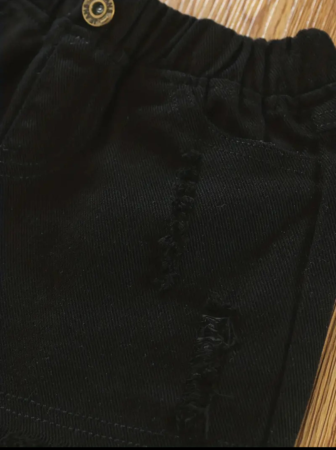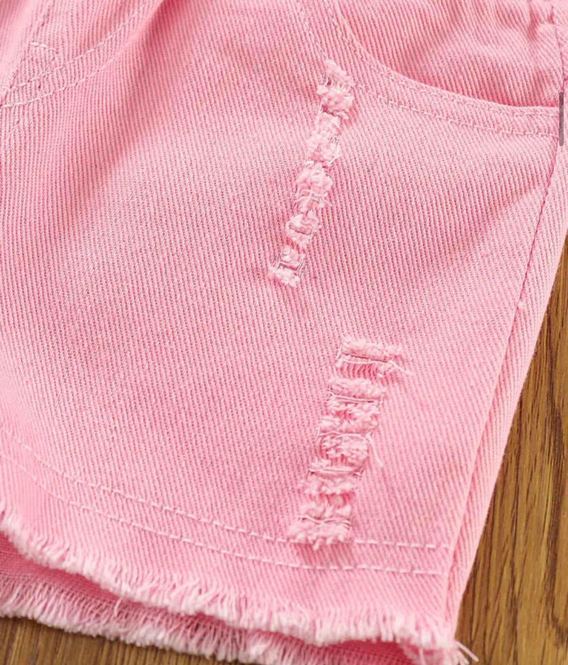 Soft blend of cotton material and distressed throughout the shorts. Zipper and button closure. Some stretch. Fits TTS. 1-3 weeks delivery.