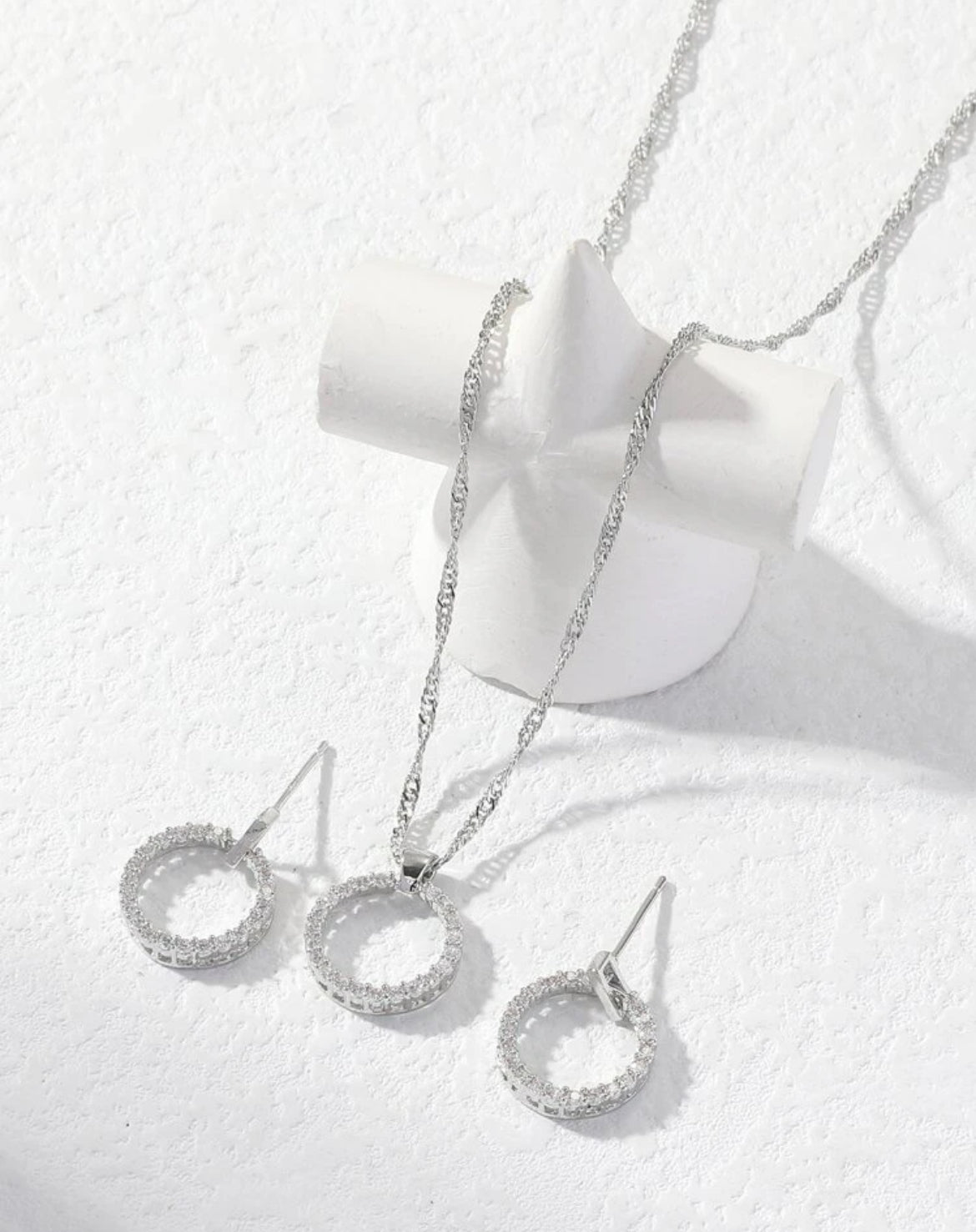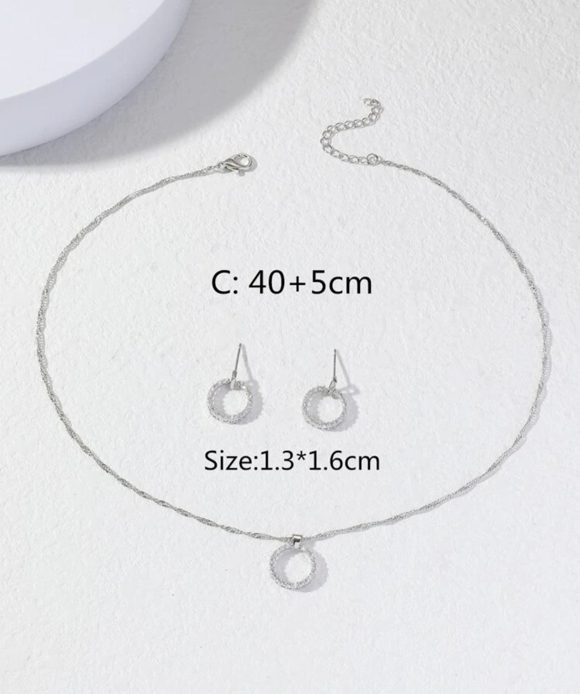 Nice circle shaped post earring and necklace set. 2 to choose from. 1-3 weeks delivery