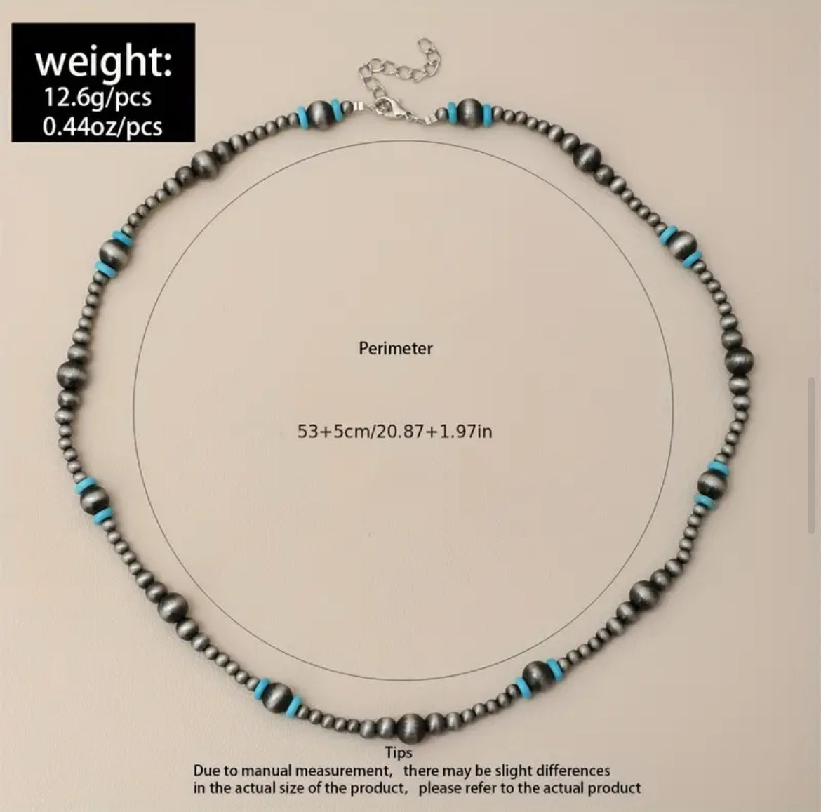 Great Navajo pearl with accent turquoise beads. This style necklace is great with sweaters. Size in pictures. 1-3 weeks delivery