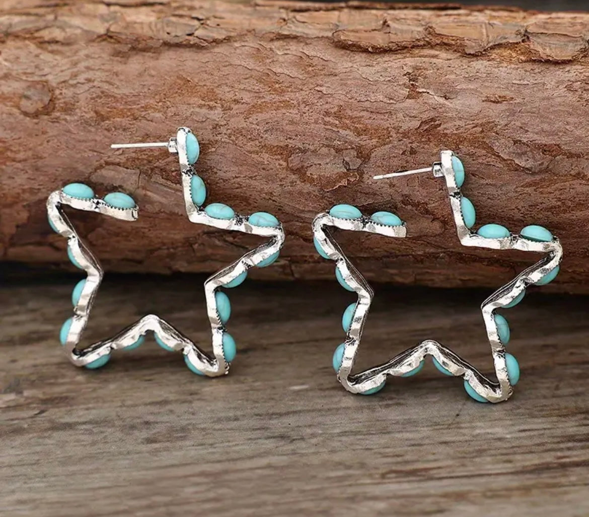 Star shaped hooks with turquoise stone. Medium weight. Size in pictures l. 1-3 weeks delivery