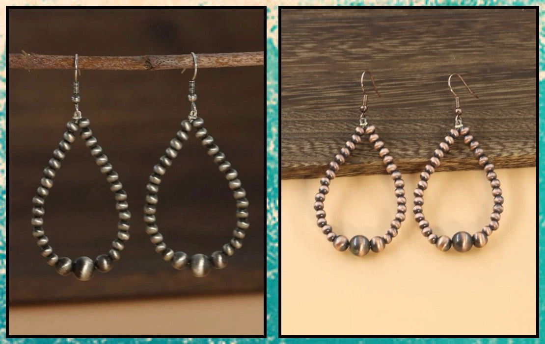 Waterdrop Navajo pearl earrings with a range in size pearls. Lightweight, hook and 2 options. 1-3 weeks delivery