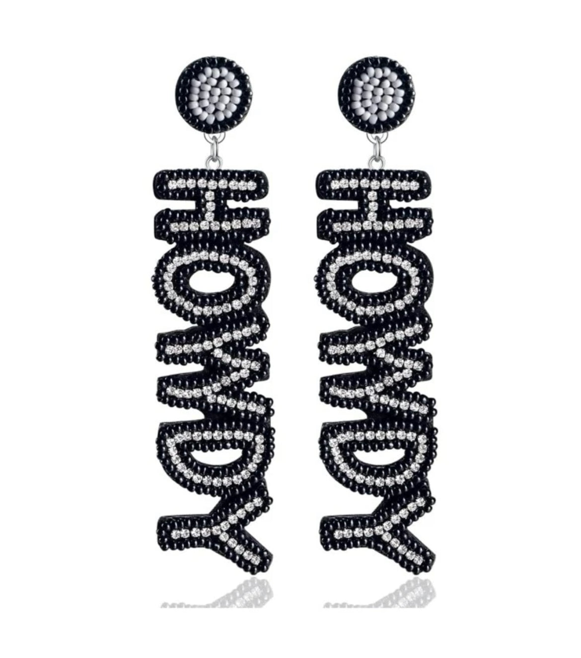 2 tone beaded Howdy earrings on posts. Approx 3” in size. Medium weight 1-3 weeks delivery
