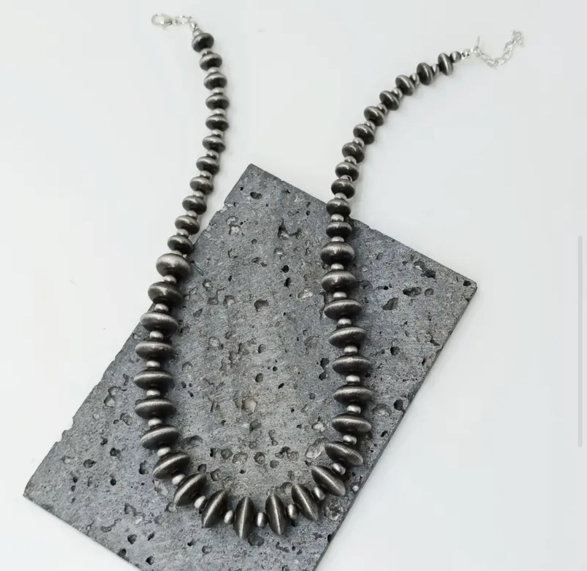 Great Navajo pearl necklace with flat beads. Approx 18” and has clasp closure. 1-3. weeks delivery