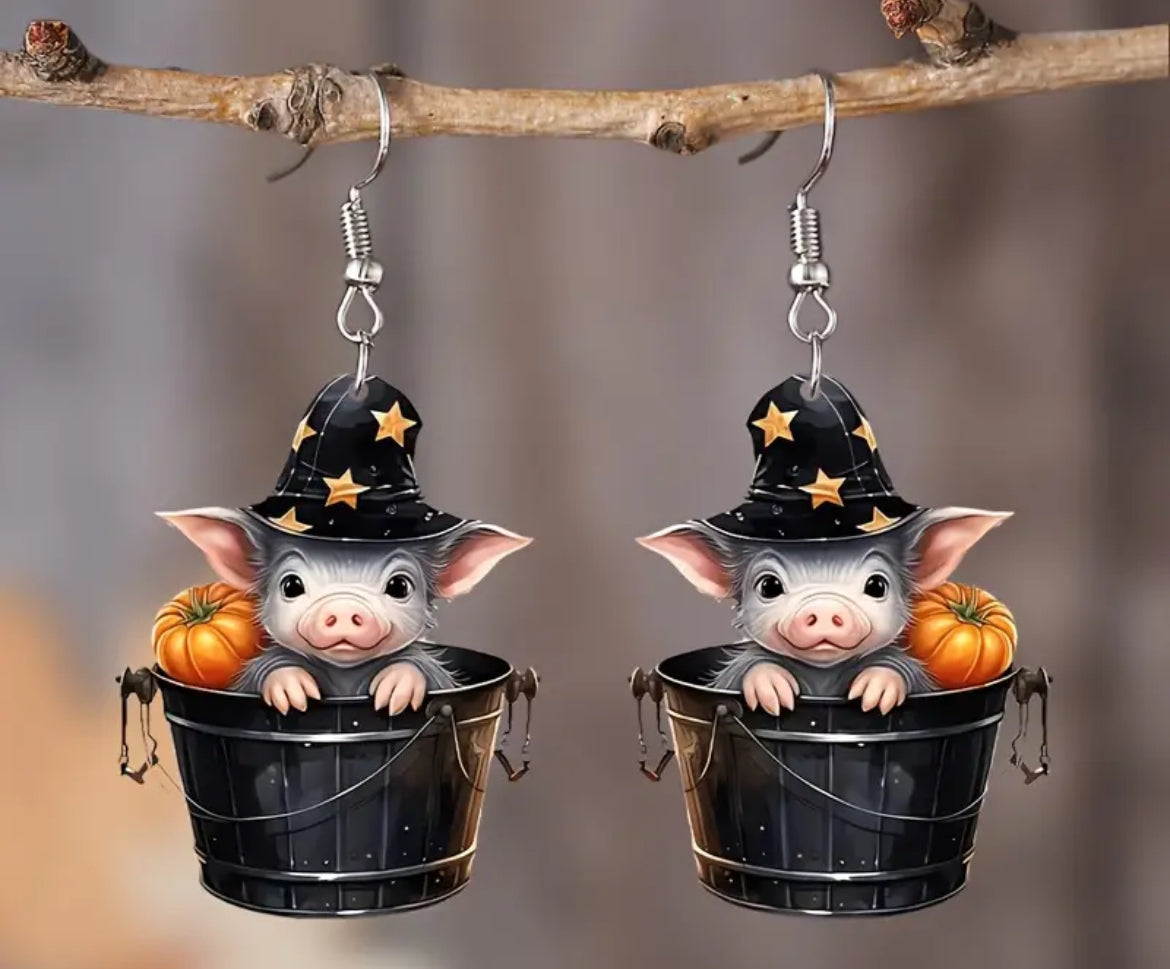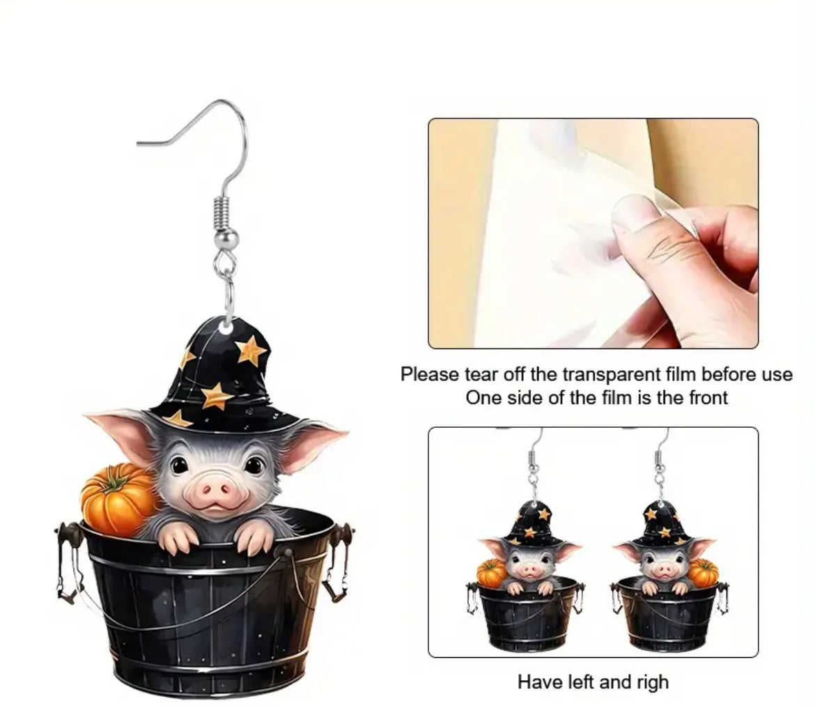 Made of flat acrylic material and hook style. Lightweight, cute Halloween design and size in pictures. 1-3 weeks delivery