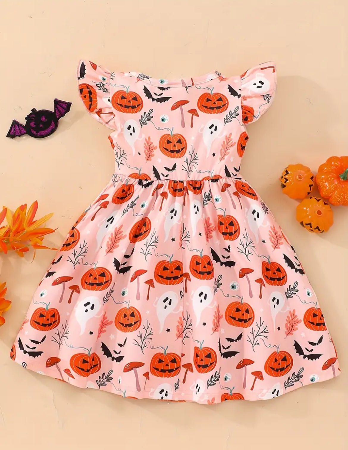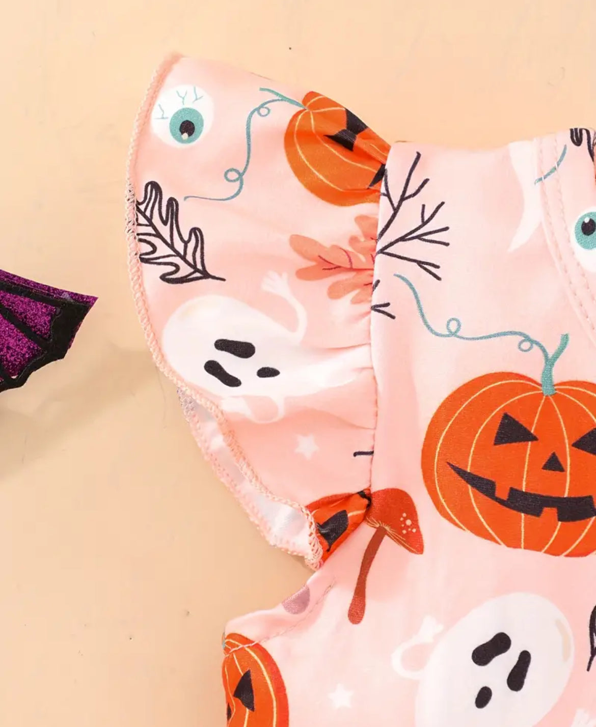 Made of knitted cotton material. Cute ghost and pumpkin design throughout and flutter sleeves. Fits TTS. 1-3 weeks delivery