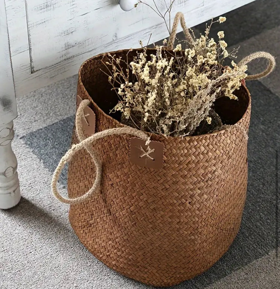 Cute farmhouse decor with this woven basket and handles. Versatile for any room of the house. Size in pictures. 1-3 weeks delivery.