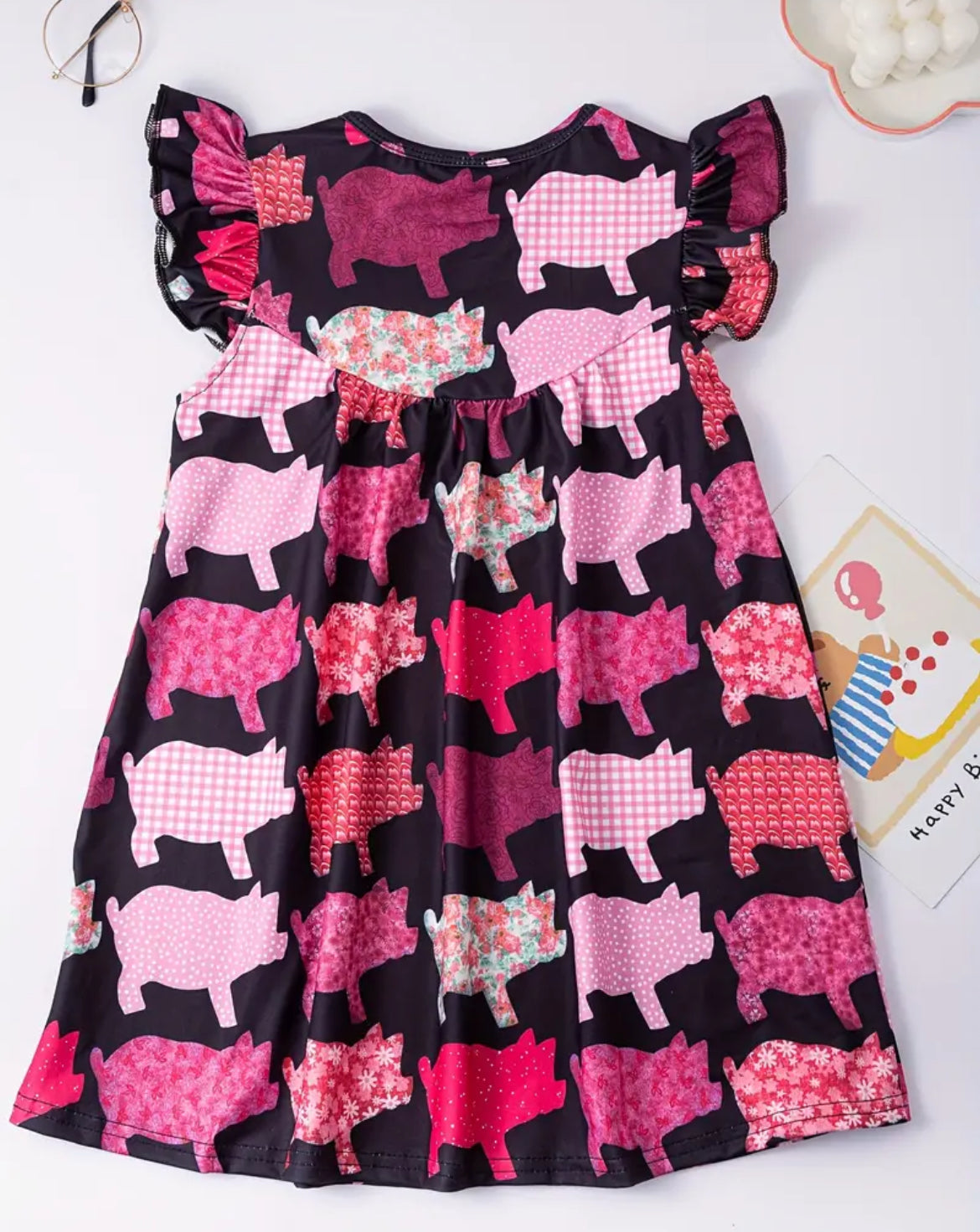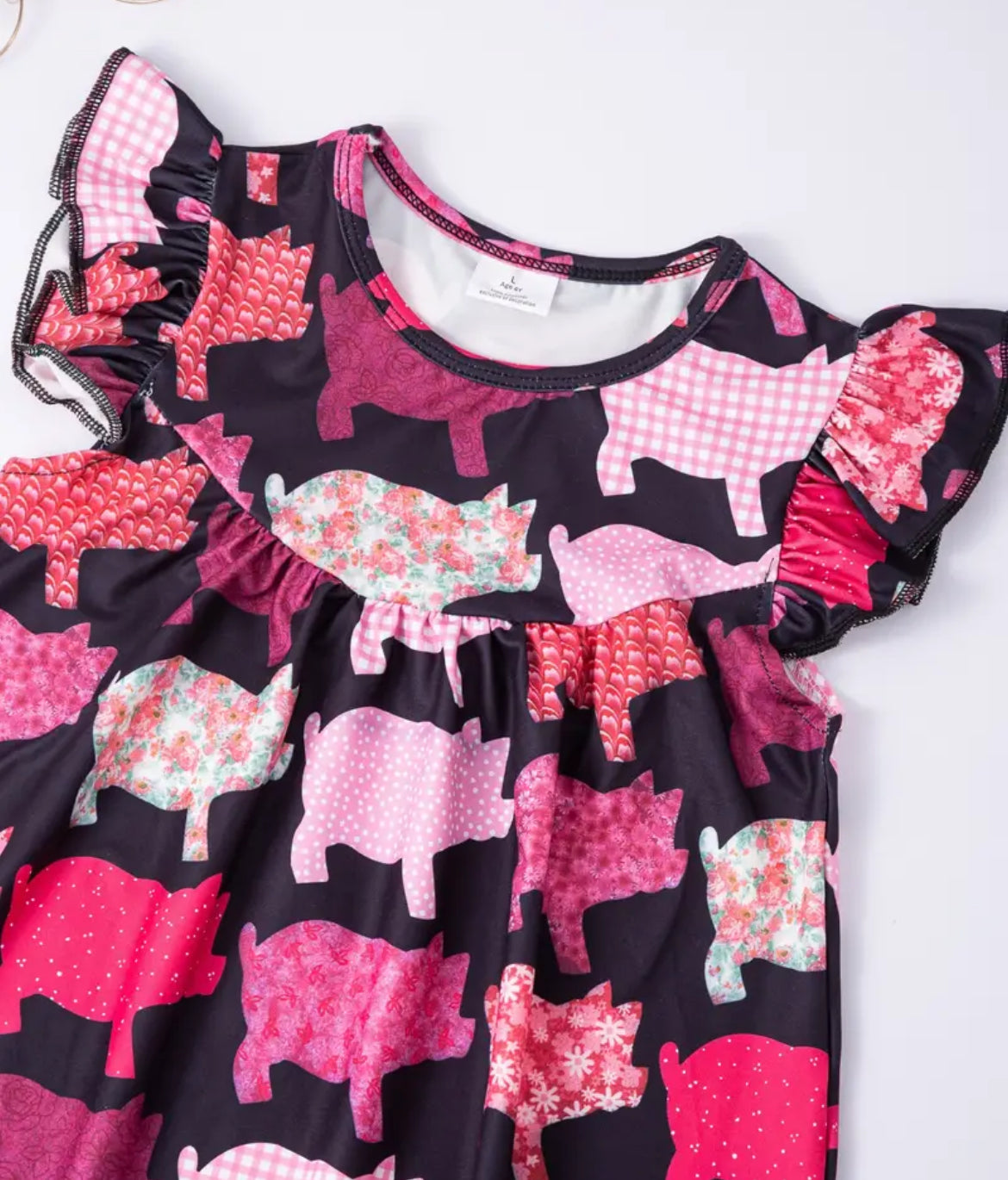 Made of a cotton polyester blend material. Stretch. Slipover head style. Knee length. cute pig design with frilly sleeves. Fits TTS. 1-3 weeks delivery.