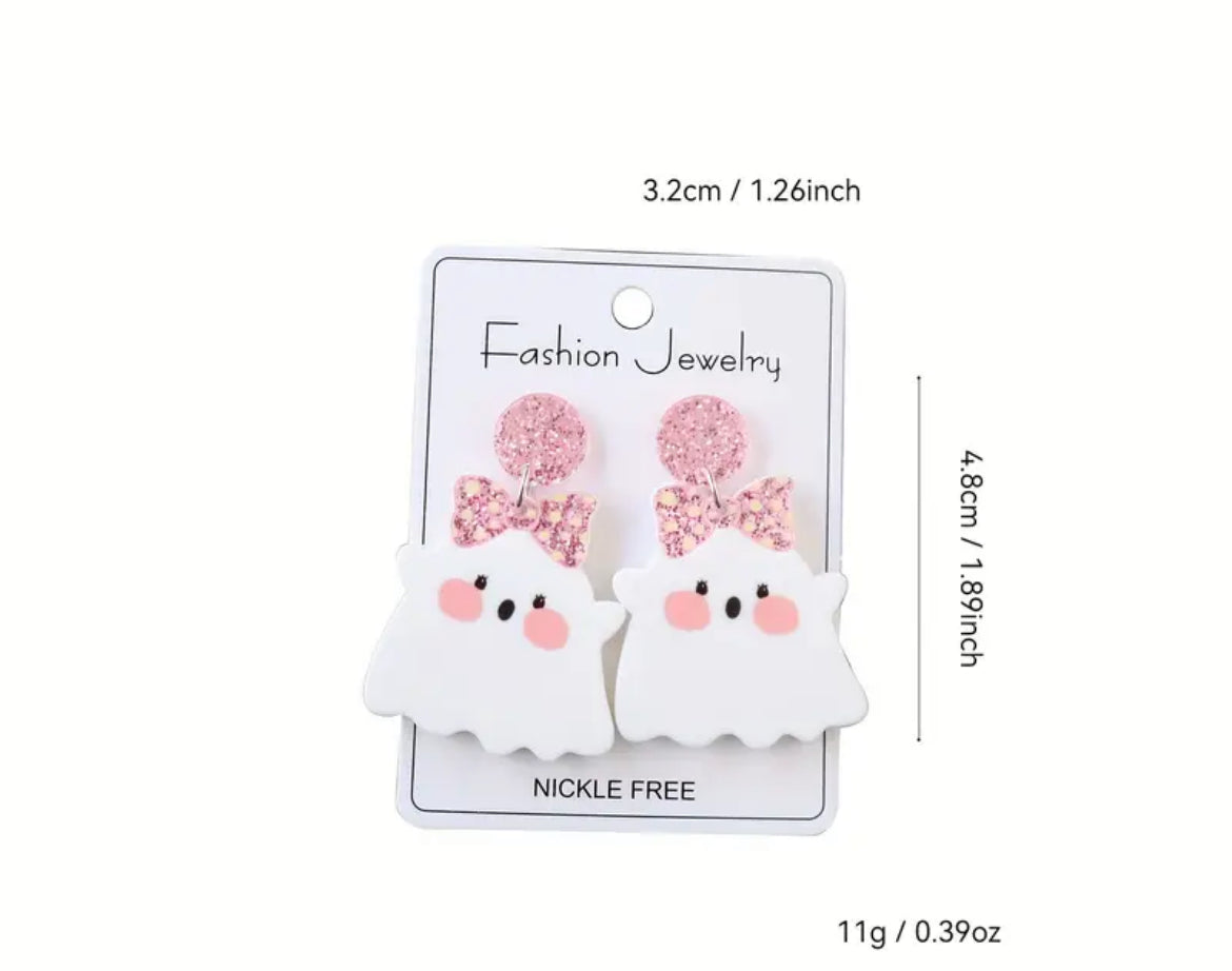 Super cute pink post ghost earrings. Great for the Halloween season. Size in pictures. Lightweight. 1-3 weeks delivery