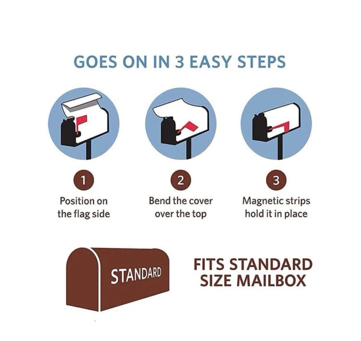 Made of a canvas material. Fits standard size mailbox. Measurements in pictures. The have magnets that make it easy to put on and remove easily. Buy one for every season of the year. 1-3 weeks delivery