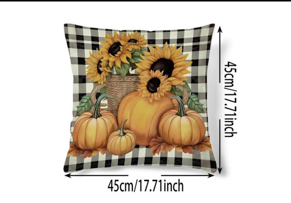 Checkered Sunflower Pumpkin Pillow Case