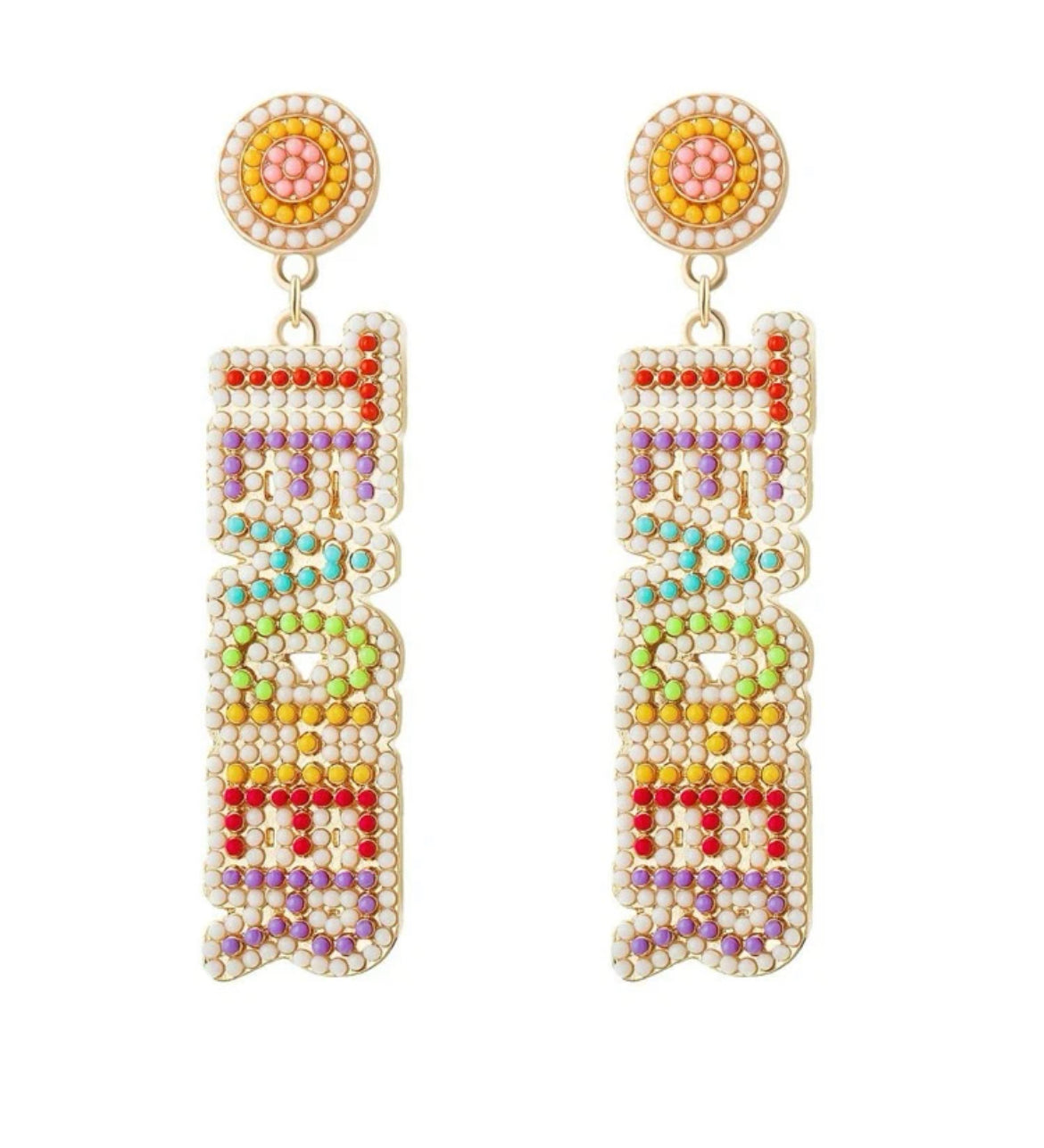 Great beaded post earrings with teacher in multi colors attached. 1-3 weeks delivery